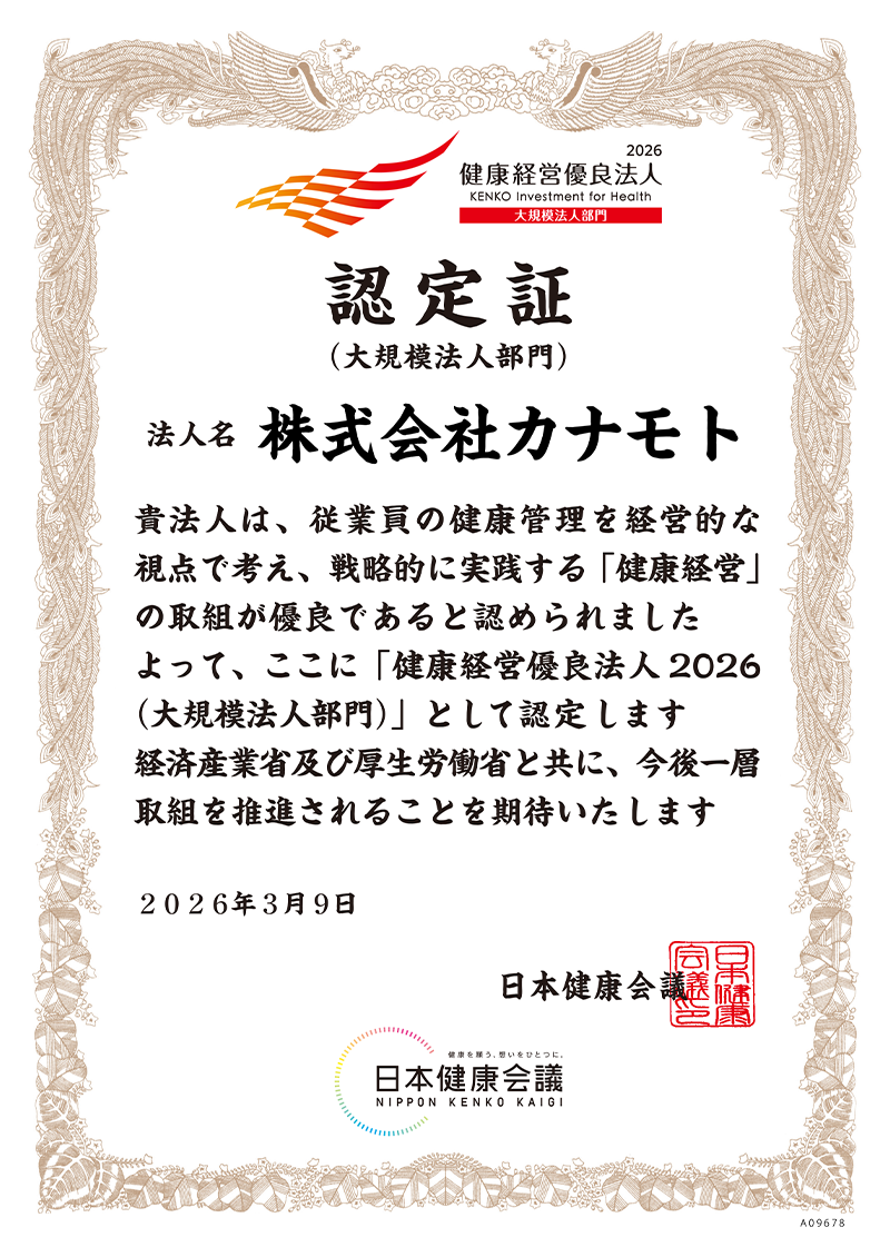 この度、当社は経済産業省が実施する健康経営優良法人認定制度において「健康経営優良法人2026(大規模法人部門)」に認定されました。