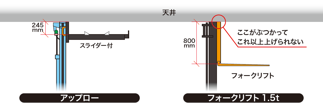 | アップロー + スライダー付 | フォークリフト(1.5t) | ||