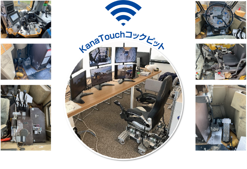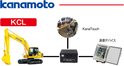 油圧ショベル、ホイールローダー、ブルドーザーなど汎用建設機械の遠隔操縦を実現する「KanaTouch」。独立型の完全後付アタッチメントを設置することで、いつもお使いの建機を“リモートコントロール可能な建機”に進化させることができます。