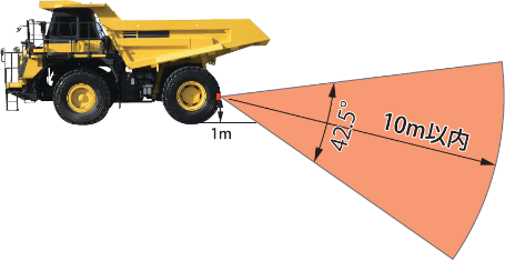 重ダンプの場合は後進のため、カメラ1 台で十分な視野角を確保できます。